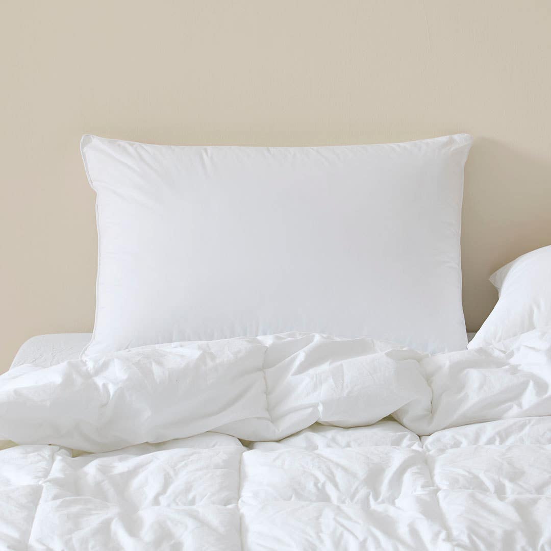 Drift off to sleep in comfort with the Bed Bath N' Table Wool Blend Pillow. Crafted from a blend of wool and polyester in a cotton japara cover, this pillow offers medium-high loft to support the head, shoulders, and neck, making it a great choice for side sleepers. Wool also absorbs moisture while polyester maintains the spring in the pillow, resulting in a hypoallergenic, breathable and durable sleeping pillow.